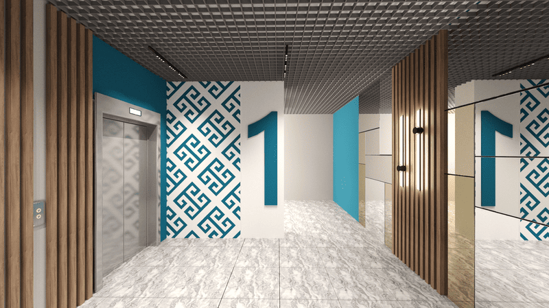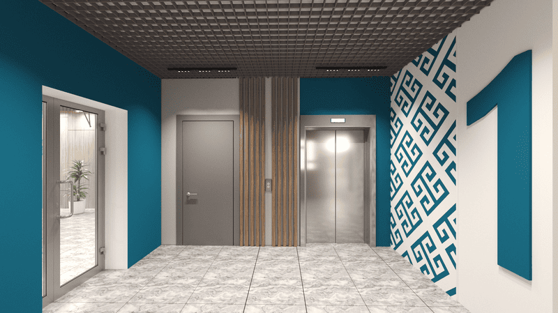 Кирпичный дом комфорт-класса на 1-м этаже. Фасад выполнен из навесных вентилируемых систем с облицовкой из керамогранита и фиброцементных панелей, дополнен декоративной подсветкой в ночное время. Предусмотрены две сквозные входные группы (с улицы и со двора) и централизованные коммуникации.